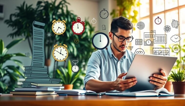 Effective time management is key to beating procrastination and boosting productivity. Using techniques like the Pomodoro Technique can help. It involves working in 25-minute bursts, then taking a 5-minute break. This keeps focus sharp and prevents burnout.