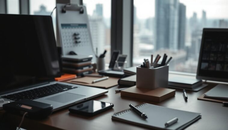 By using smart time management and productivity tips, you can find a better balance. This can make you happier at work, reduce stress, and improve your health19. Remember, 50% of professionals say bad time management increases stress and anxiety19. So, make time management a big part of your daily routine.